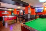 The interior is spacious, comfortably accommodating over 50 guests, and provides a welcoming atmosphere. It features eight TV screens for simultaneous sports viewing, a pool table, electronic darts, and slot machines for additional entertainment. Air conditioning ensures a comfortable environment throughout the year.